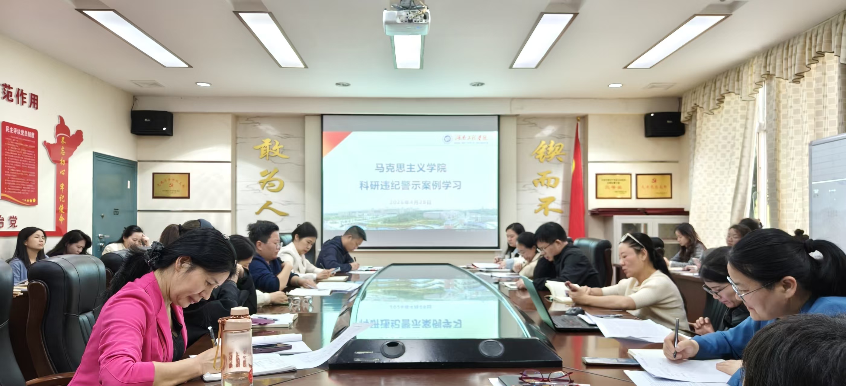 在E125教室召开科研违纪警示案例专题学习会,全体教职工参加。